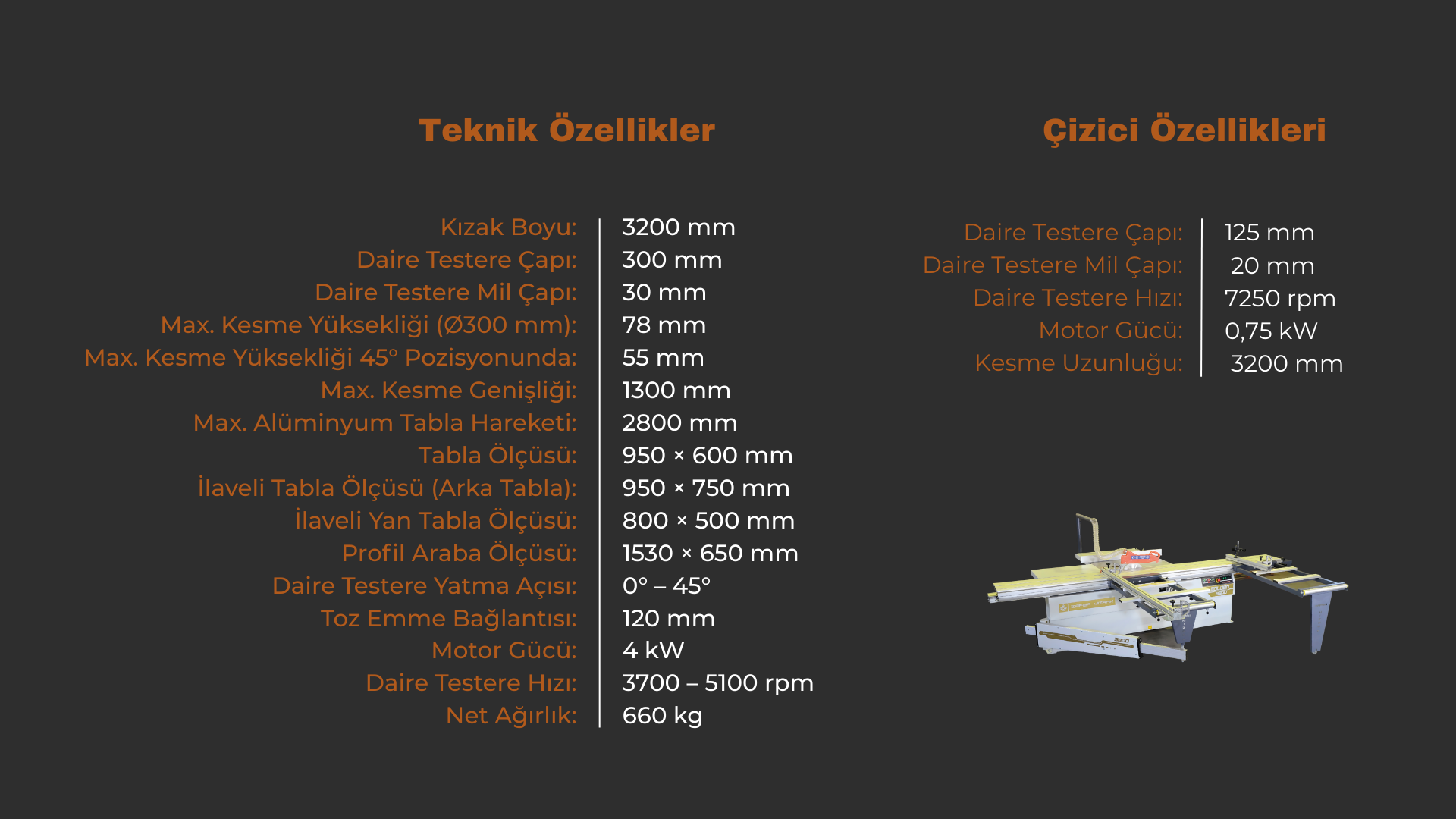 güçlü motoruyla ahşap kesim sektöründe sağlam ve uzun ömürlü kullanım sunar.